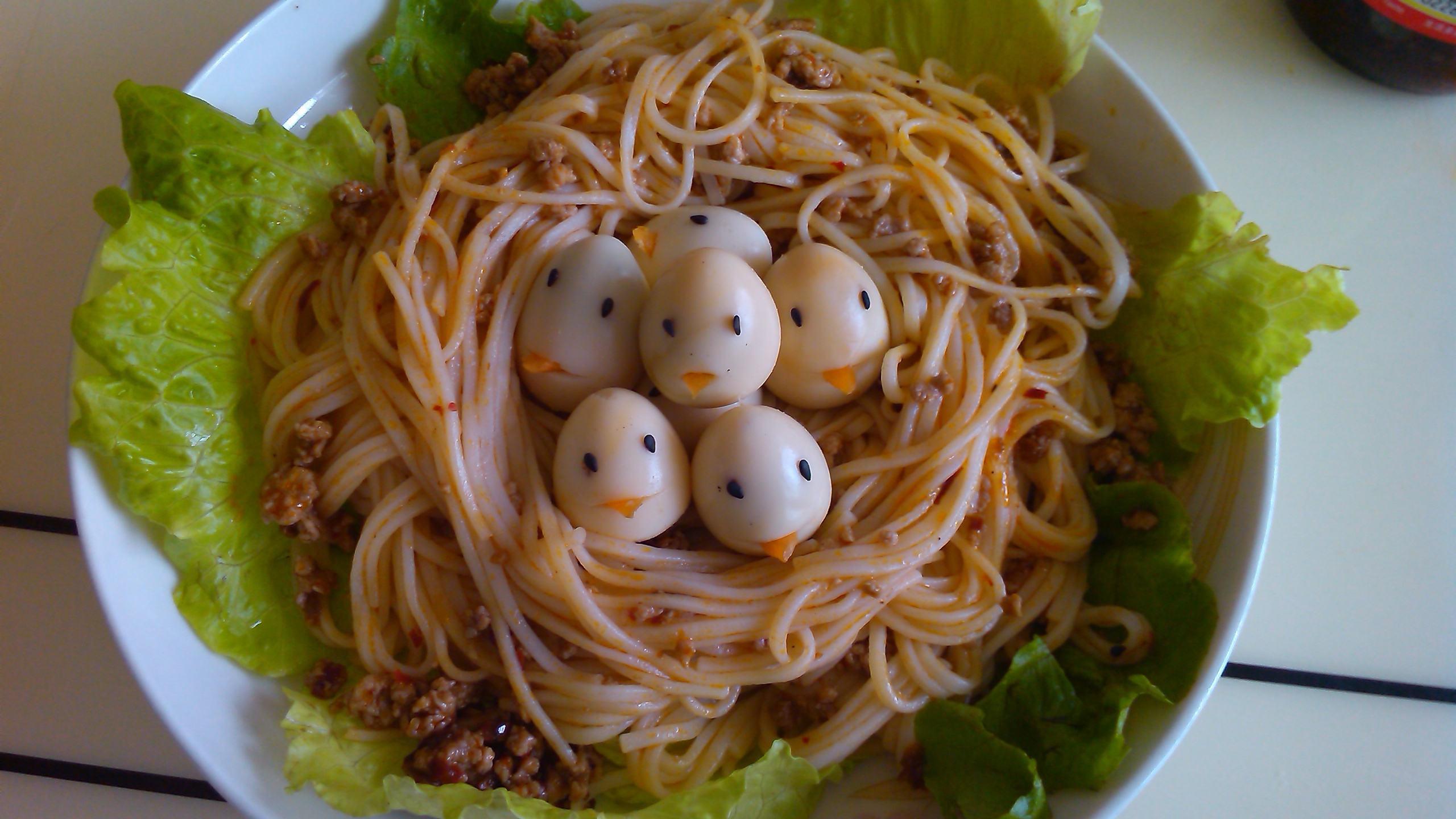 周末有空在家做给大,小朋友吃,用豆拌酱拌的面,加了点肉末,味道不错。谢谢~