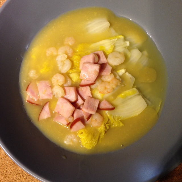 没有虾皮胡萝卜神马的,就用海虾仁和圆腿肉代替
