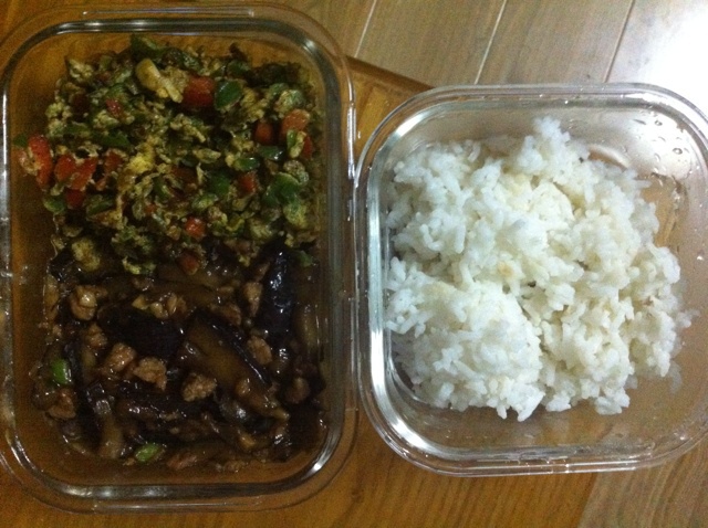 肉末茄子和青椒蛋果,好吃!!!