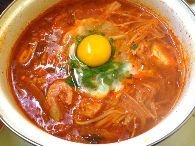 泡菜海鲜豆腐汤,低卡