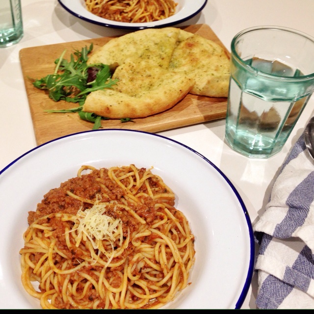 肉酱意粉,蒜香flatbread