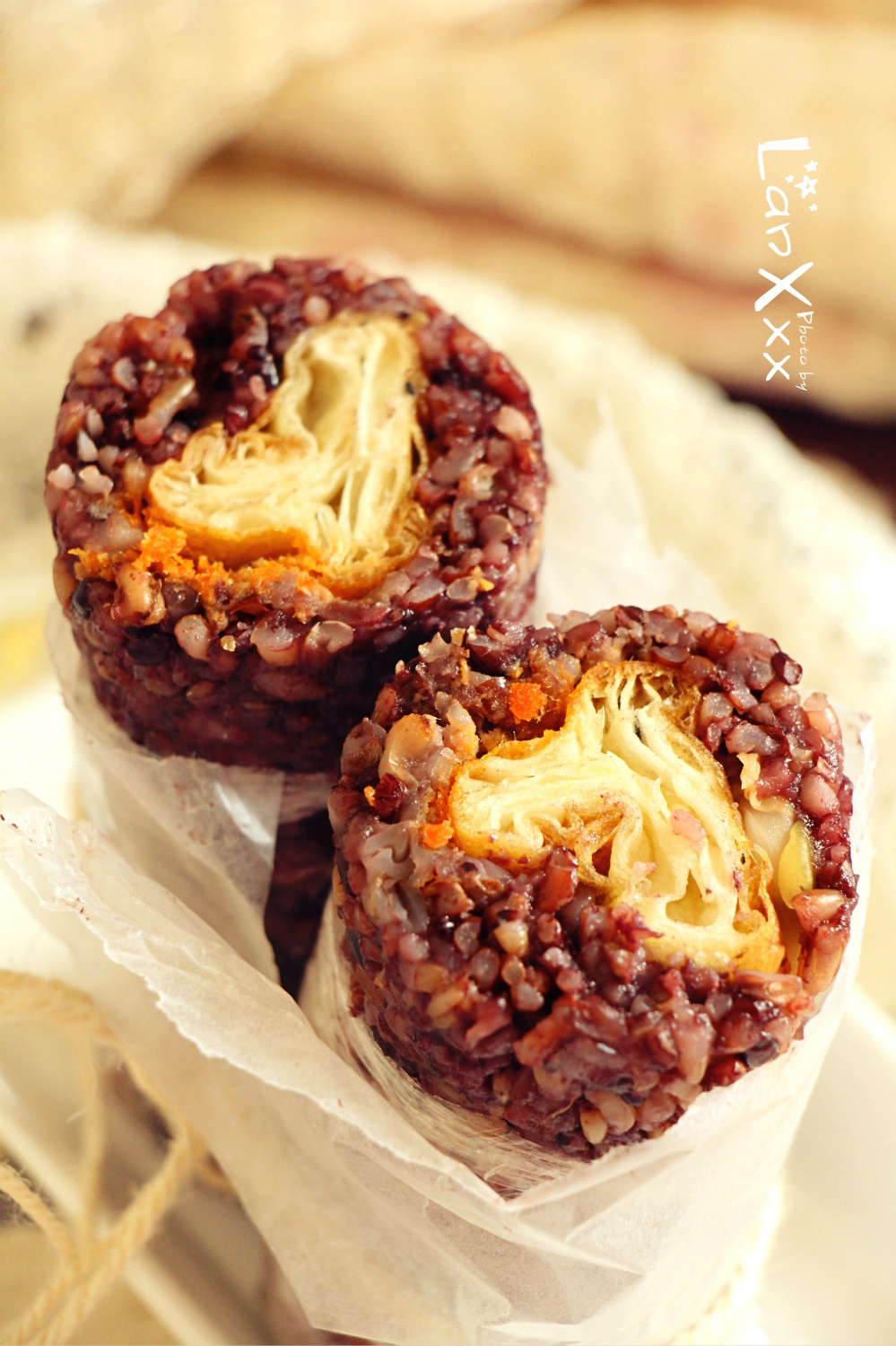 北方银第一次的粢饭团~抱歉家里又是剩一点点肉松...只是用了家里的紫米饭黏度不够水量又少,原本用了两根油条,结果光荣地爆...