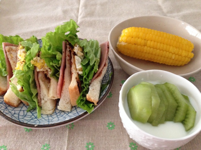三明治 玉米 猕猴桃酸奶 很饱的早餐