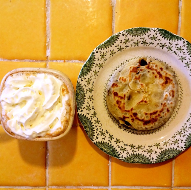 红豆饼&普洱奶茶,加了whipped cream,超级满足!