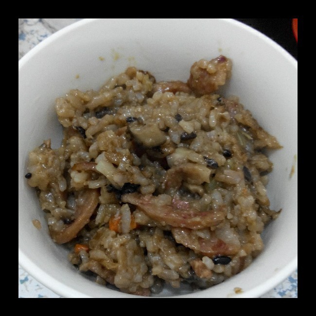放了点老抽,就变成这颜色了,味道不错好吃,一下吃了两碗哈哈