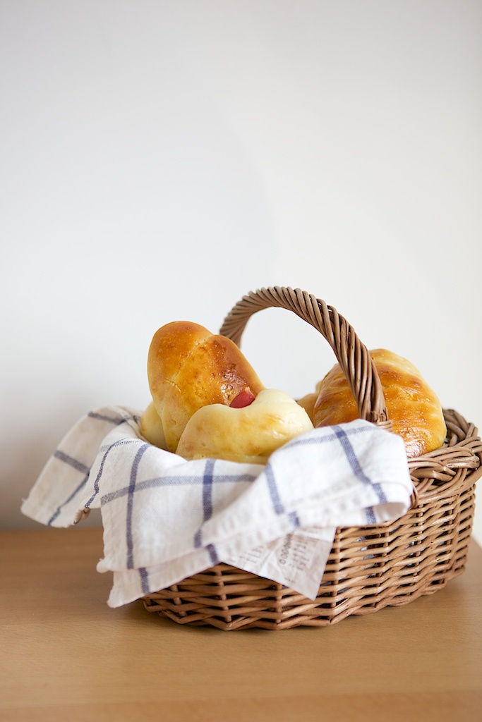 额,这个是根据博客上的一个方子做的法兰克福热狗包一筐,造型百态,其丑无比,好在味道不错,哈...