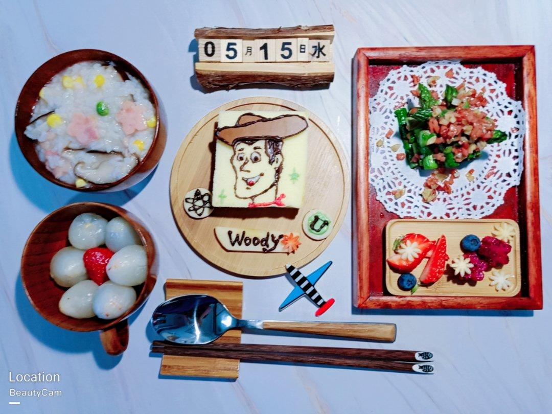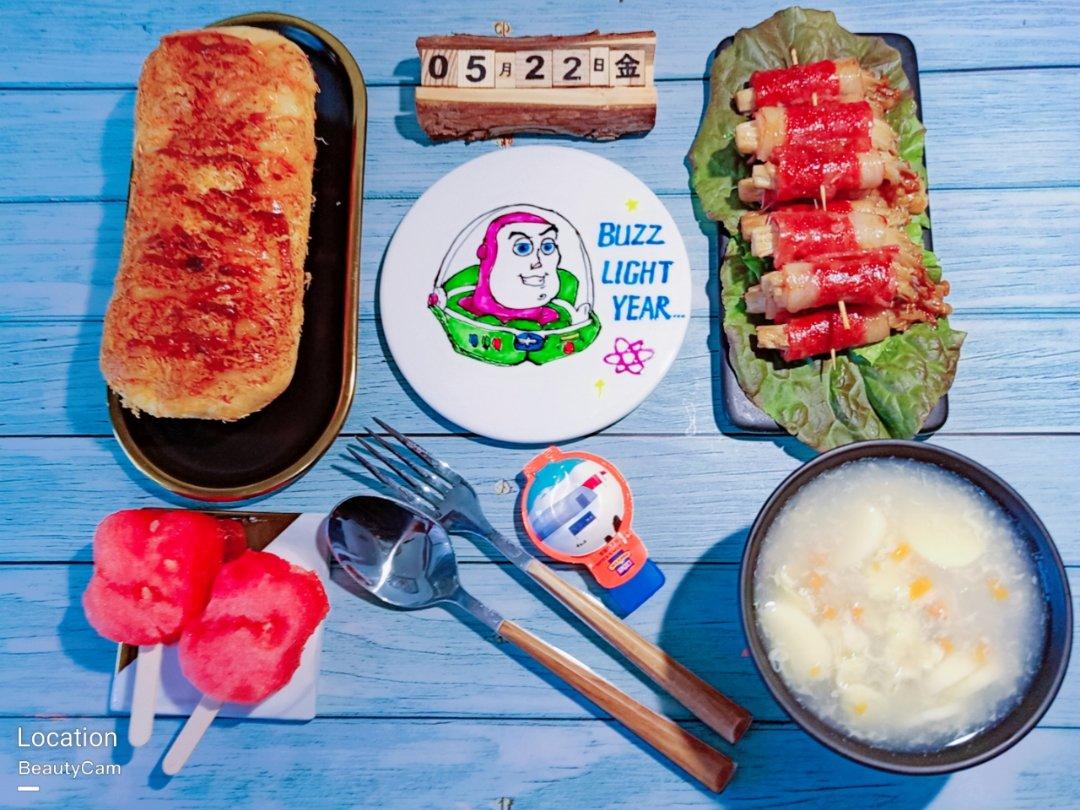 😍巴斯光年画盘,肉松面包,培根卷金针菇,玉子...