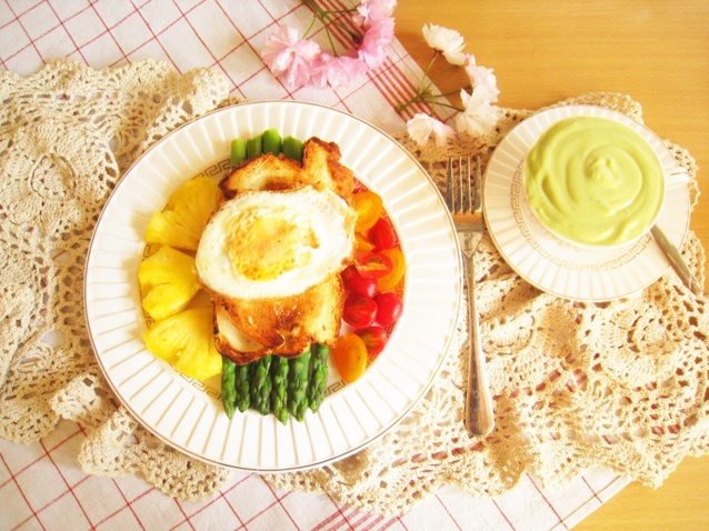 #早餐•2014年5月4日# 超喜欢厚重的牛油果奶昔!加上芦笋面包菠萝番茄鸡蛋,满满正能量的早餐!上上周去传染病院见习,...
