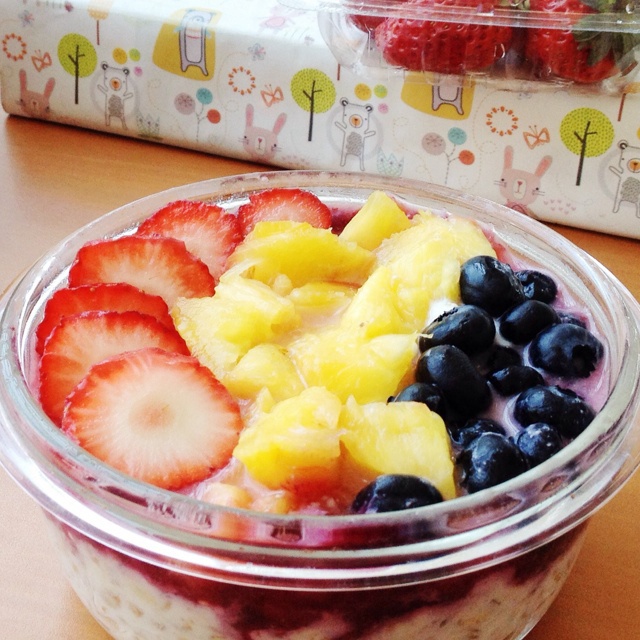 #午餐•2014年5月5日# 用的燕麦片本身就混合好多坚果以及水果干,泡了12h,就是正畸患者都能无痛吃好!菠萝好甜!不...