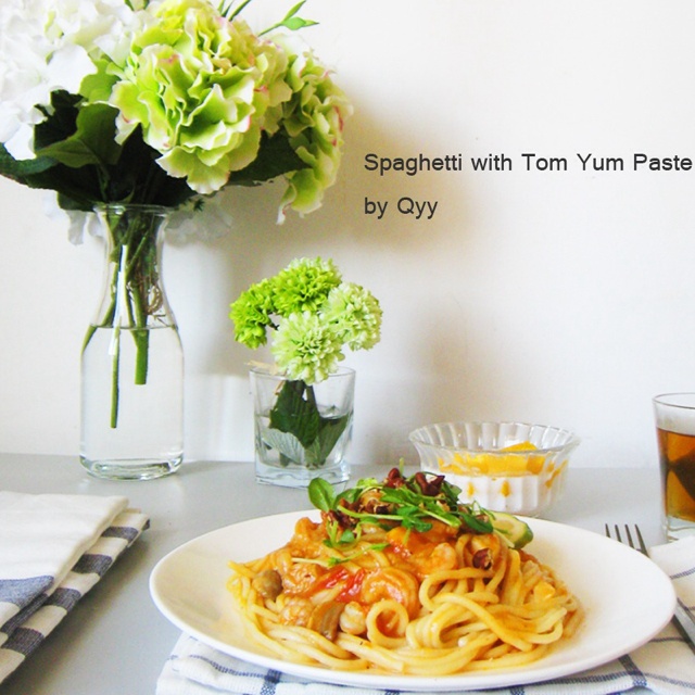 冬阴功意面,椰浆芒果,薄荷绿茶。#Dorm-made# #午餐•2014年10月4日#