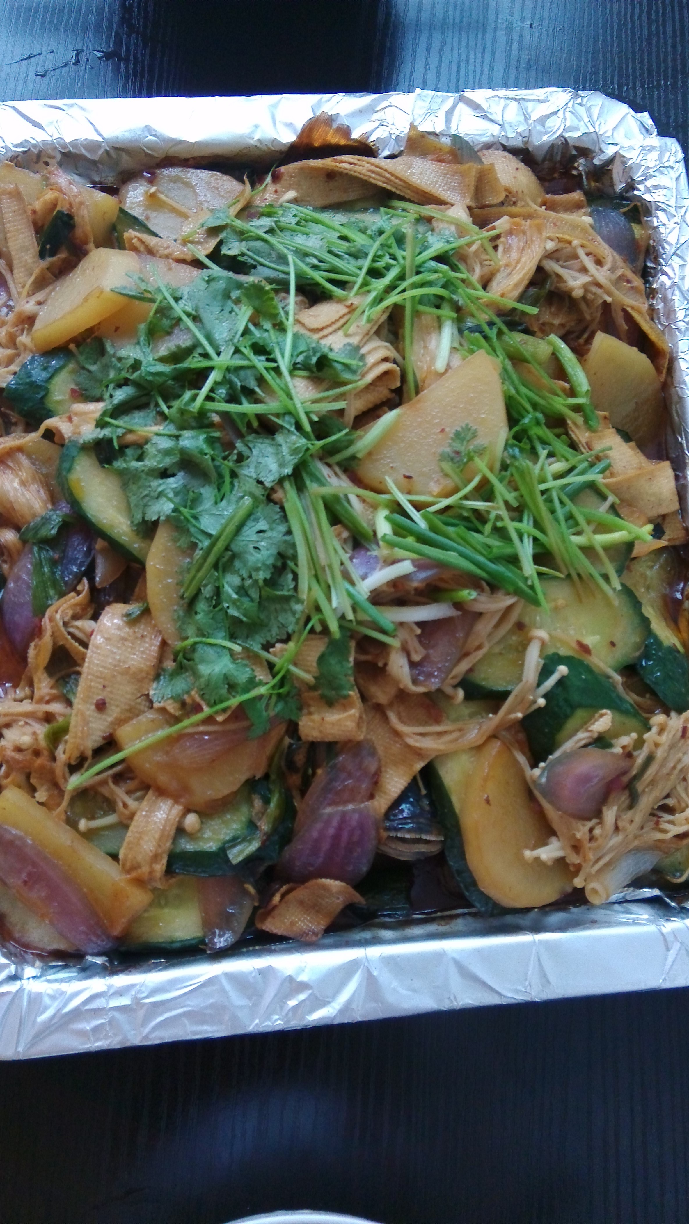 油给多了点,红红绿绿煞是好看!