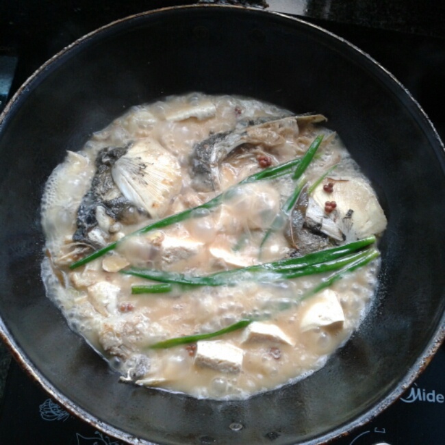 用了三斤的红鲢鱼头煮的,放了辣椒,八角,花椒,香叶,葱姜蒜来炖,味道是很好,就是汤头感觉有点...