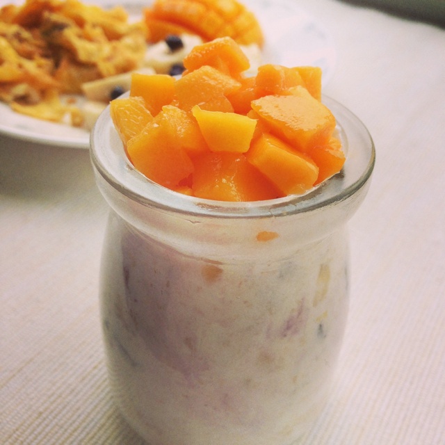 酸奶和燕麦组合一般般,配上各种水果泥和果干瞬间提升味蕾,酸甜酸的碰撞,轻轻挖一勺,混合的各...