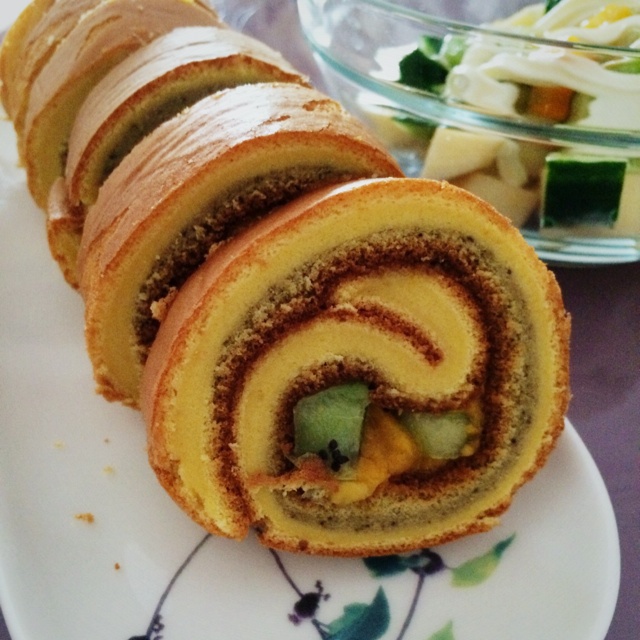 水果蛋卷,最近的包子吃的有点腻了。换了许久未吃的蛋卷。