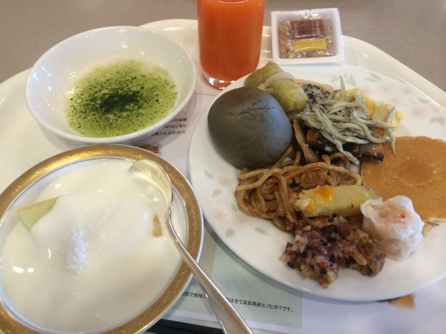 今天酒店的早餐没有中文和英文标注,全凭对食物的好奇。黑色的竹炭馒头和鱼干非常好吃! #早餐•2014年5...