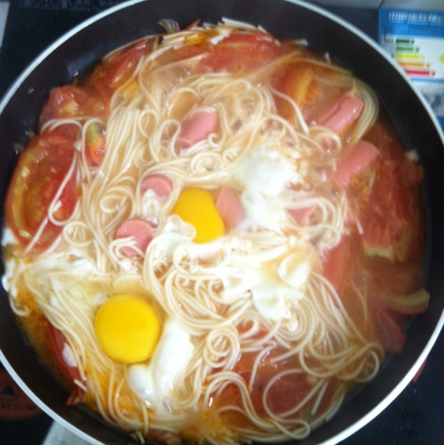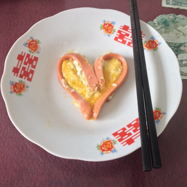 第一次做,还行吧,香肠没煎软就急着弯造型弄断了几根,下次改进