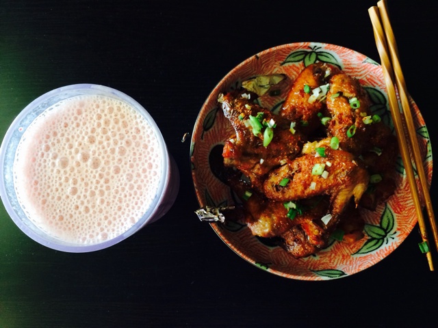 香蕉草莓奶昔+烤鸡翅