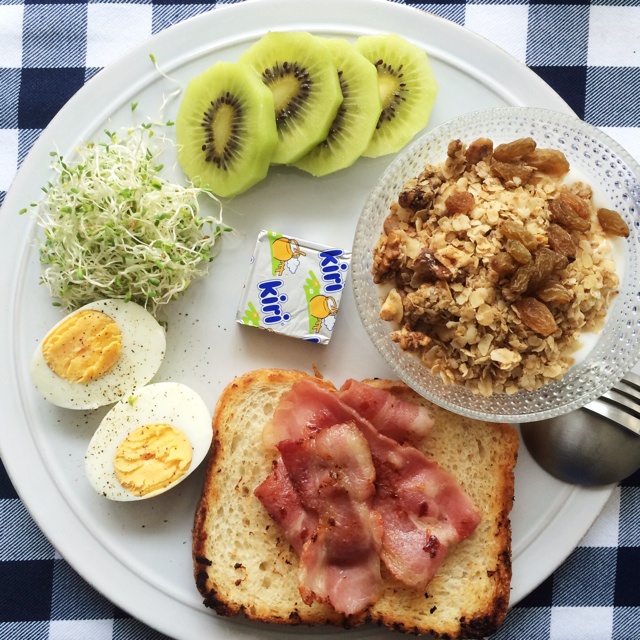 Today's breakfast 新买的kiwi很甜