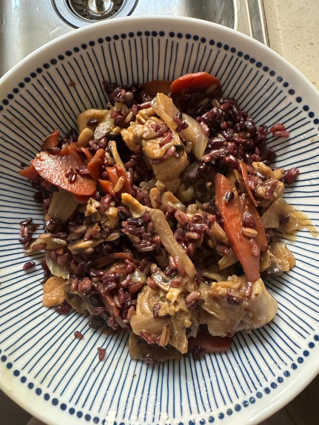 鸡腿,红萝卜,洋葱,白蘑菇,杂粮饭