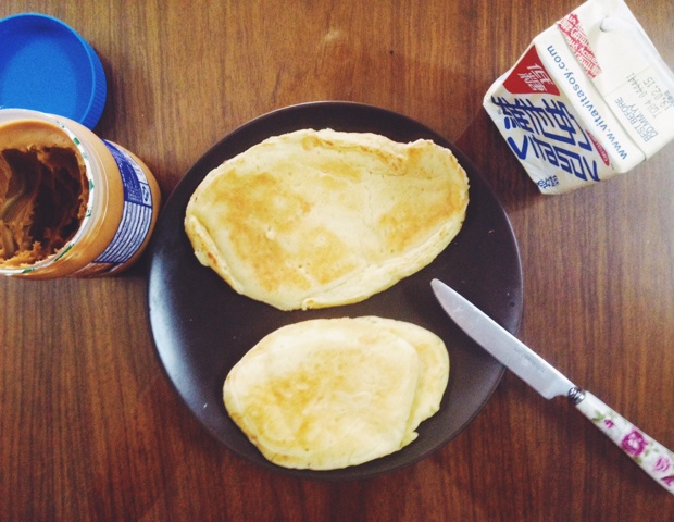 味道ok啊〜软软的,不过…为啥是这个颜色的??为啥我煎不成金黄金黄的样子TAT是因为我没放油嘛… #早餐•2014年7月...