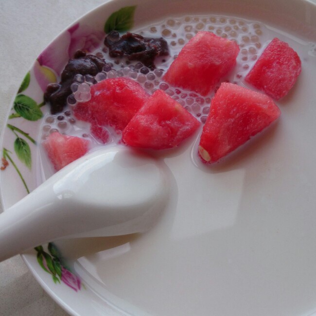 我的西瓜红豆牛奶西米露^~^好好吃