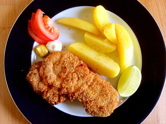 厚的猪扒中火炸好烤十五分钟完全熟了,用的180度热风放烤架上,把之前炸猪扒时面包糠吸的热油都吹出来了应该更健康些,猪扒抹...