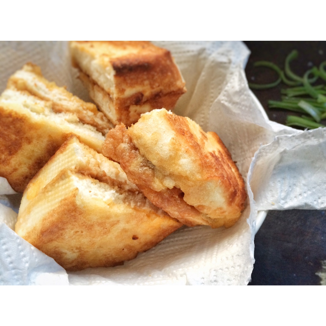 夹了坚果碎和芝麻酱的豪华鸡蛋馒头片~