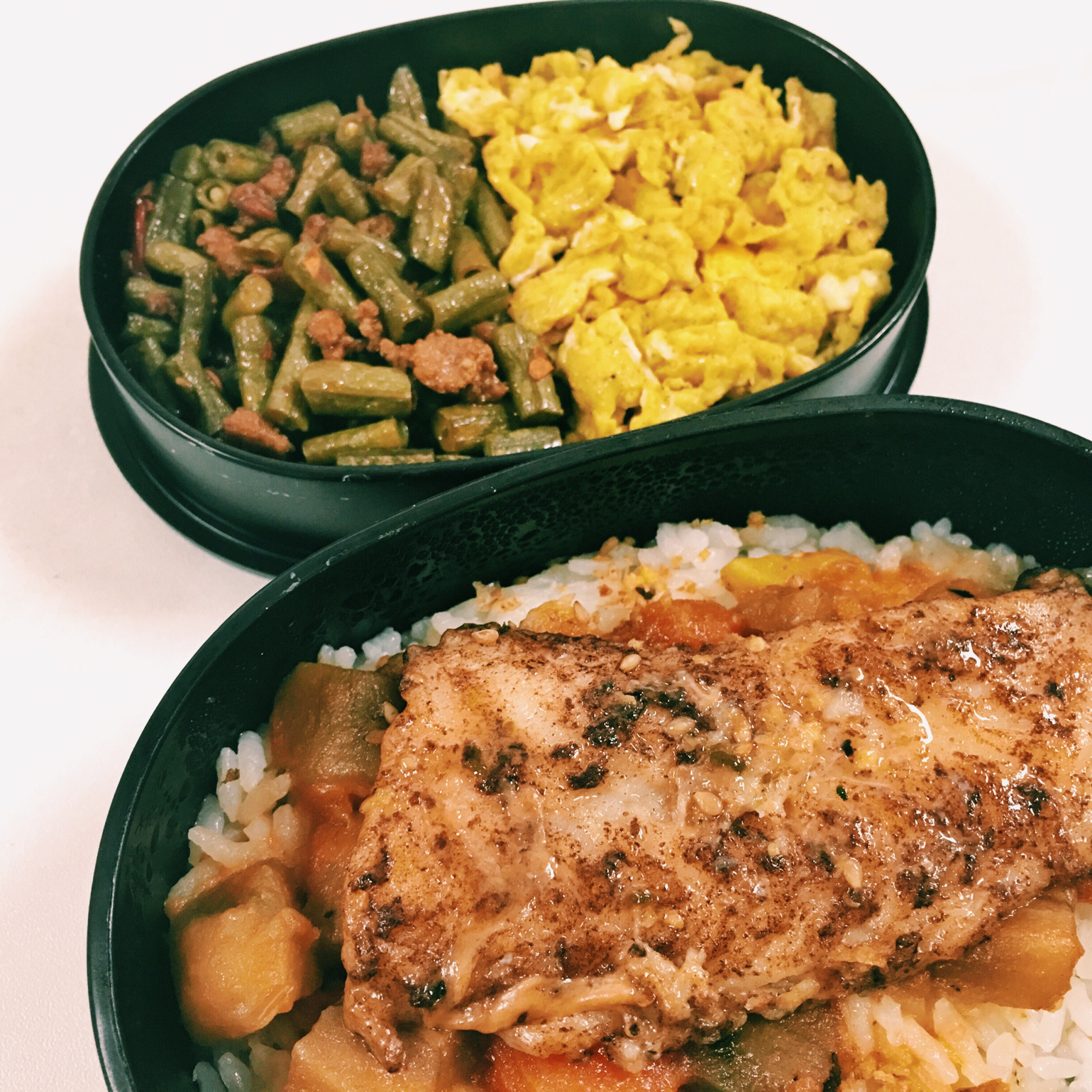 肉末酸豆角 黄油炒蛋 双茄 龙利鱼