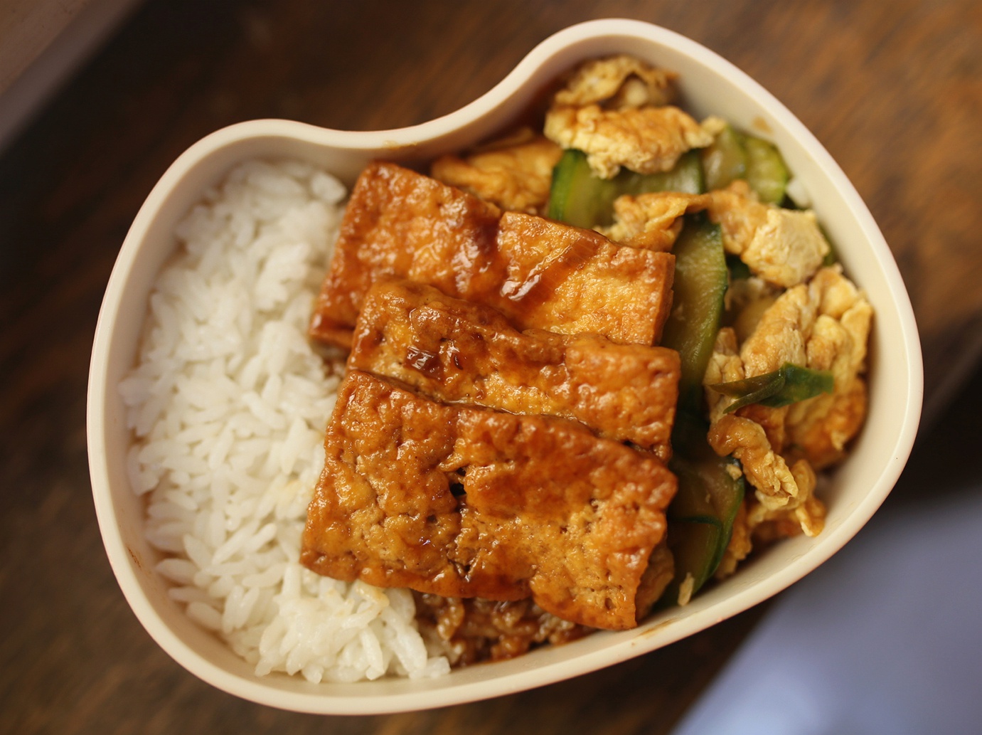 糖醋豆腐+黄瓜鸡蛋 还带了五台山台蘑酱 拌饭香!