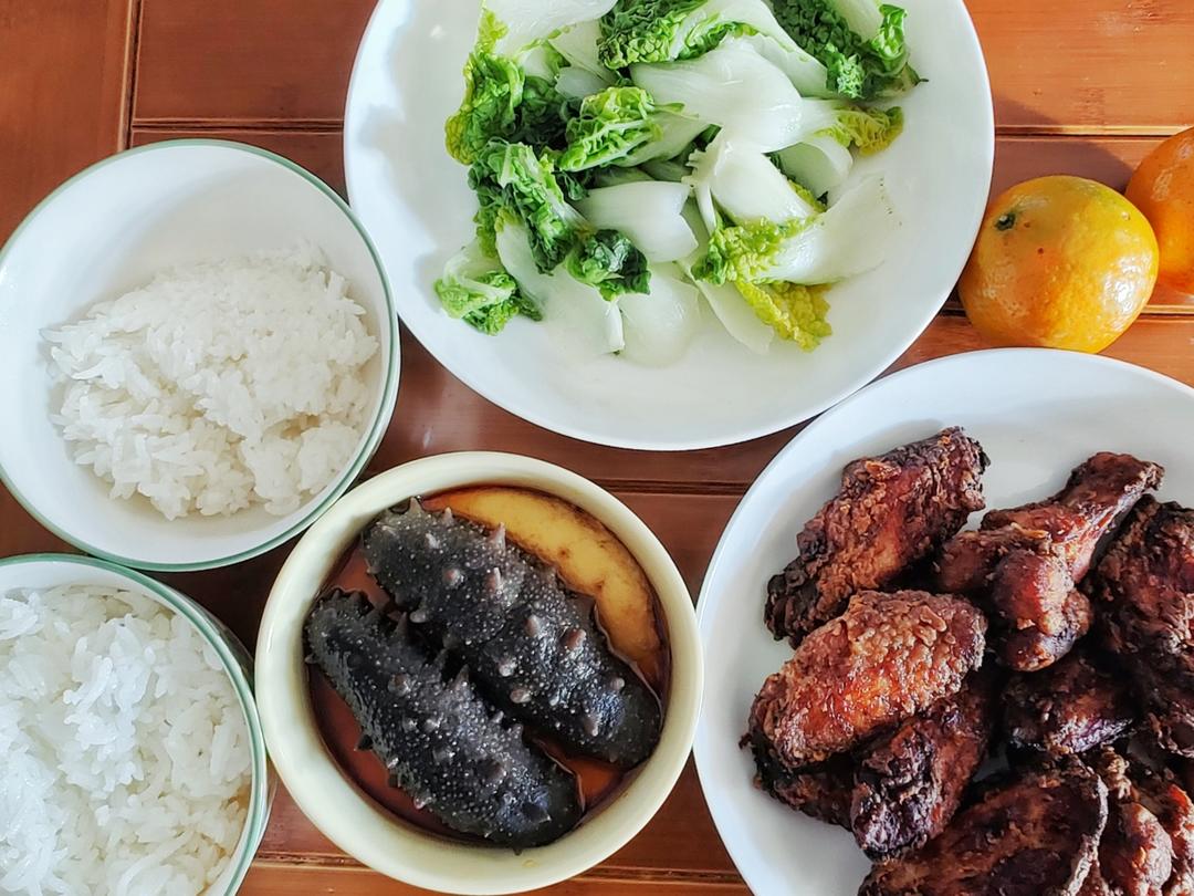 ❥海参鸡蛋羹丨酱油 咖喱炸鸡丨清焖黄心菜〉