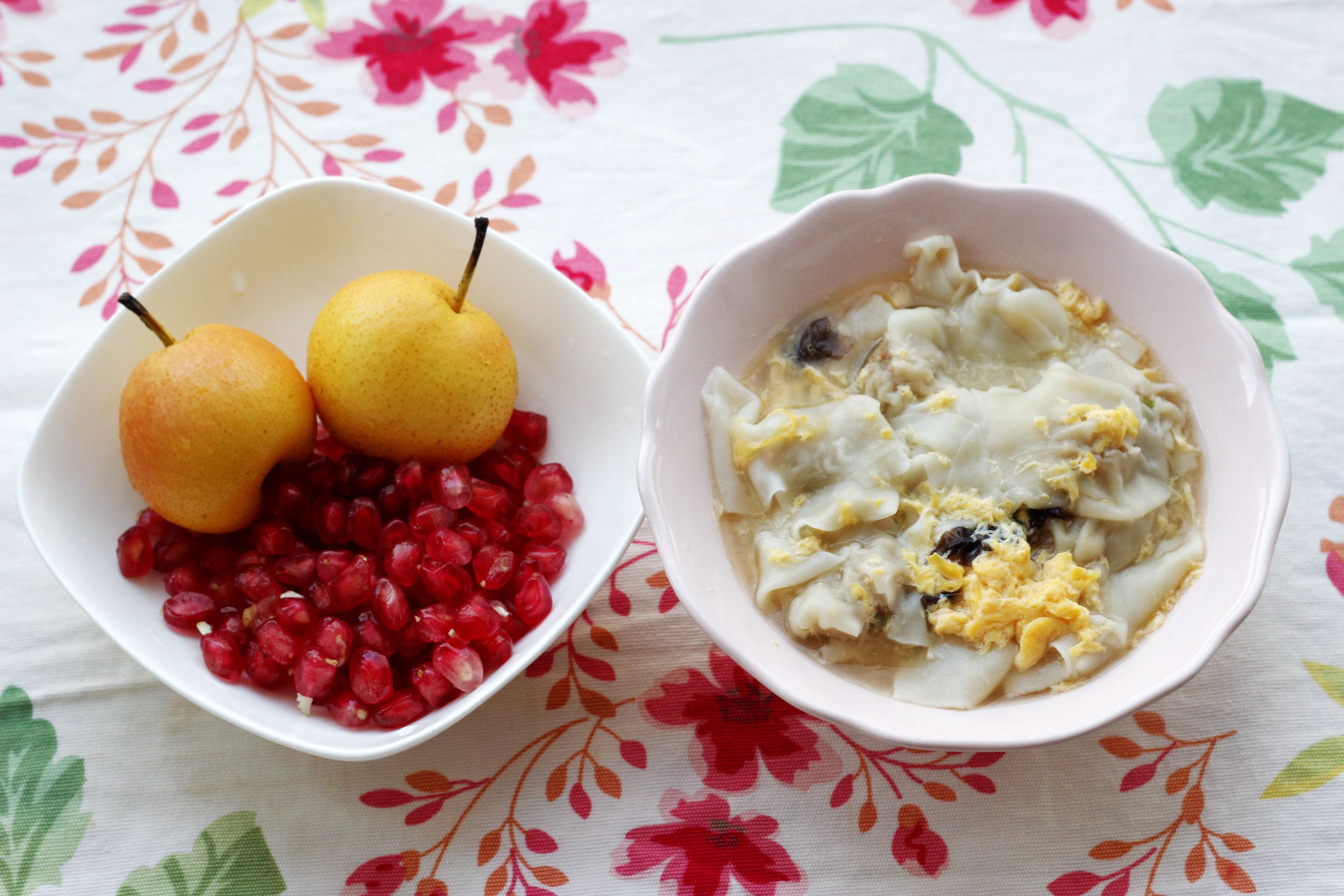 紫菜鸡蛋馄+香水梨+石榴