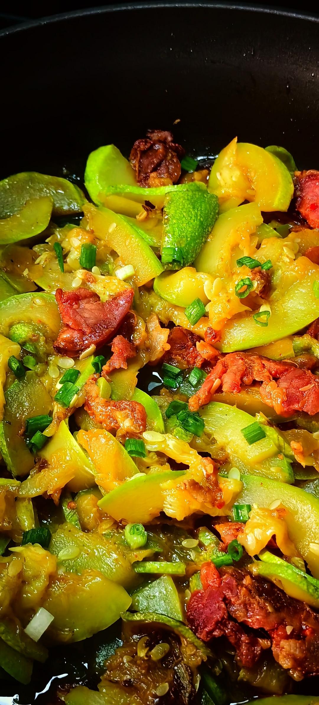原图。水焖菜,我觉得挺适合我。今天用的麻辣香肠有点烂乎了😅