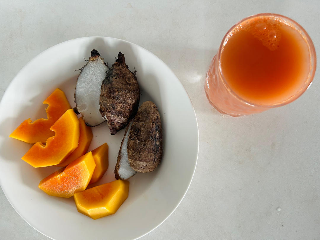 苹果胡萝卜汁+煮芋头