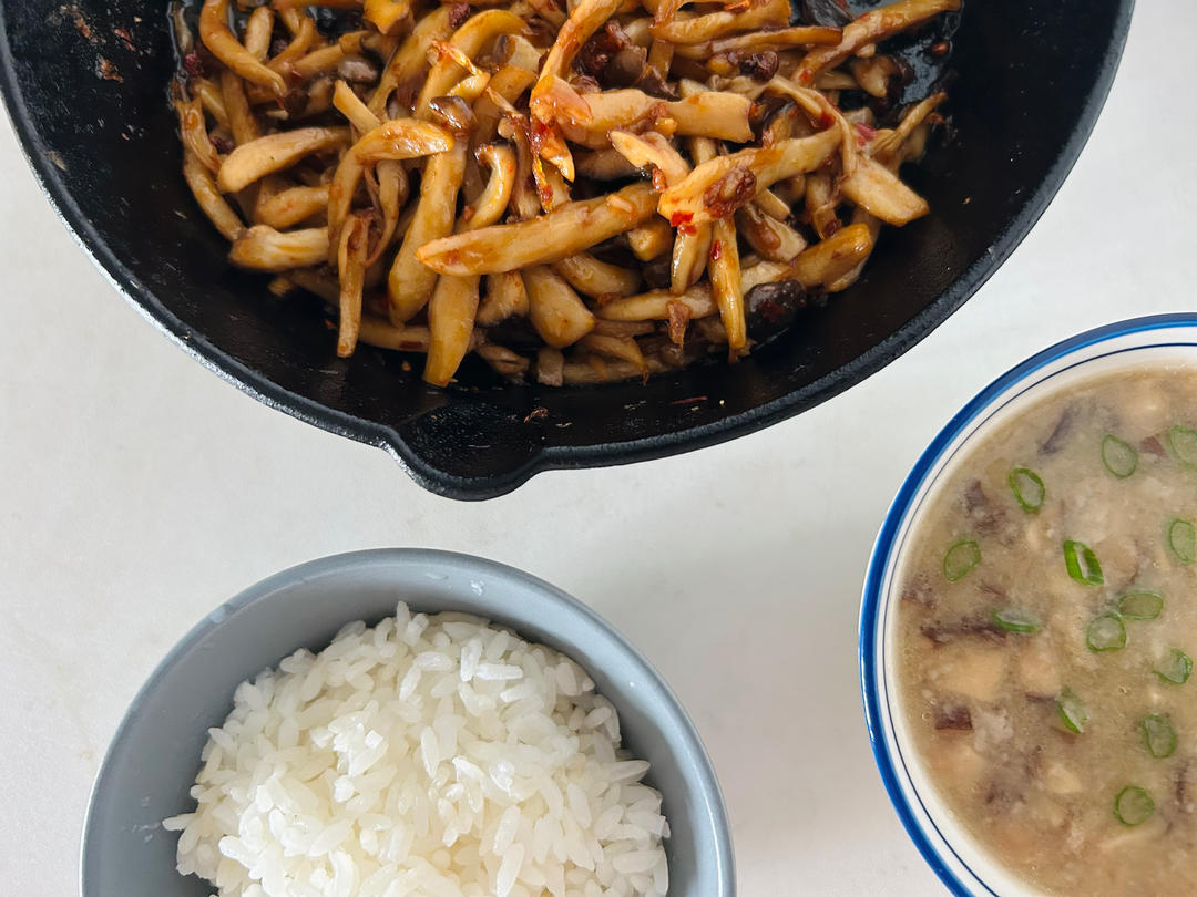 干煸杏鲍菇+香菇芋头汤