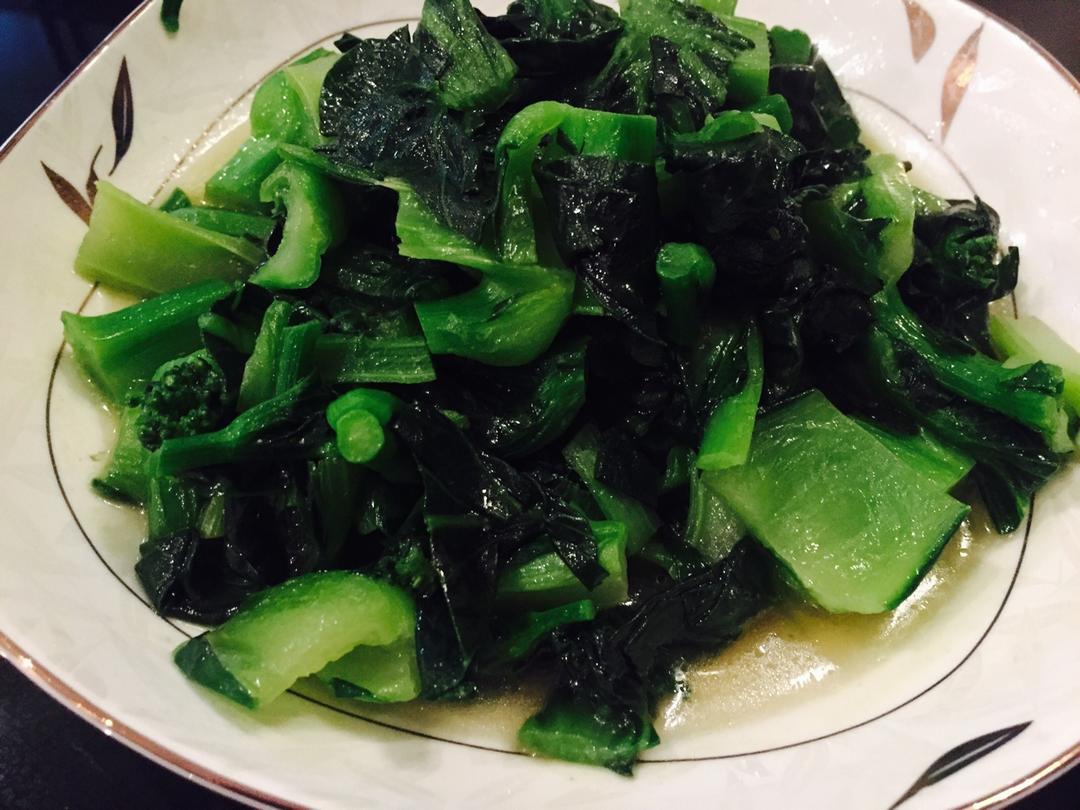 清炒苔心菜,蒸肉圆,爆炒大肠,今天老爸老妈过来了,在杭州住几天,老妈饭菜的味道奏是👍