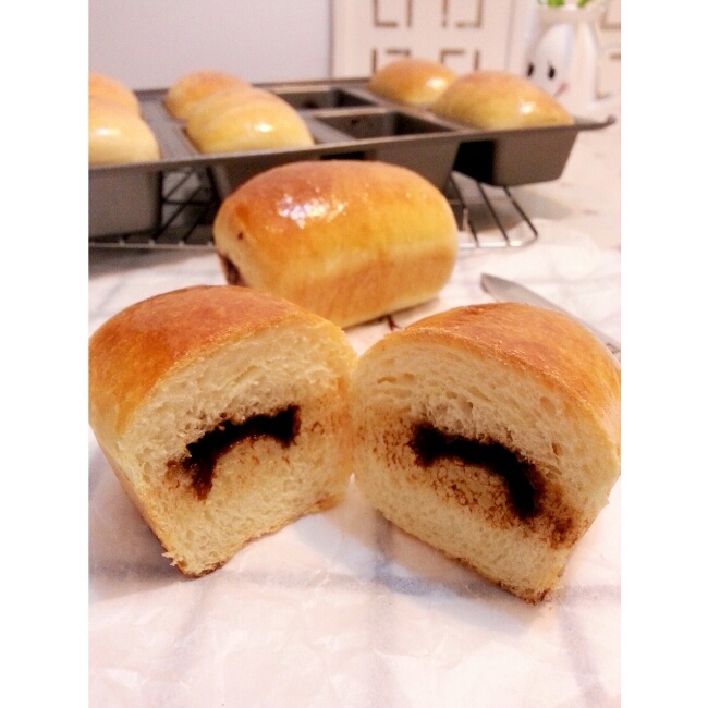 红糖肉桂和椰蓉两种馅儿的。今天上色很...