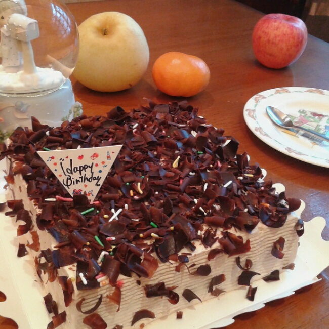 这次用淡淡的可可奶油抹面,侧面拉了横纹……