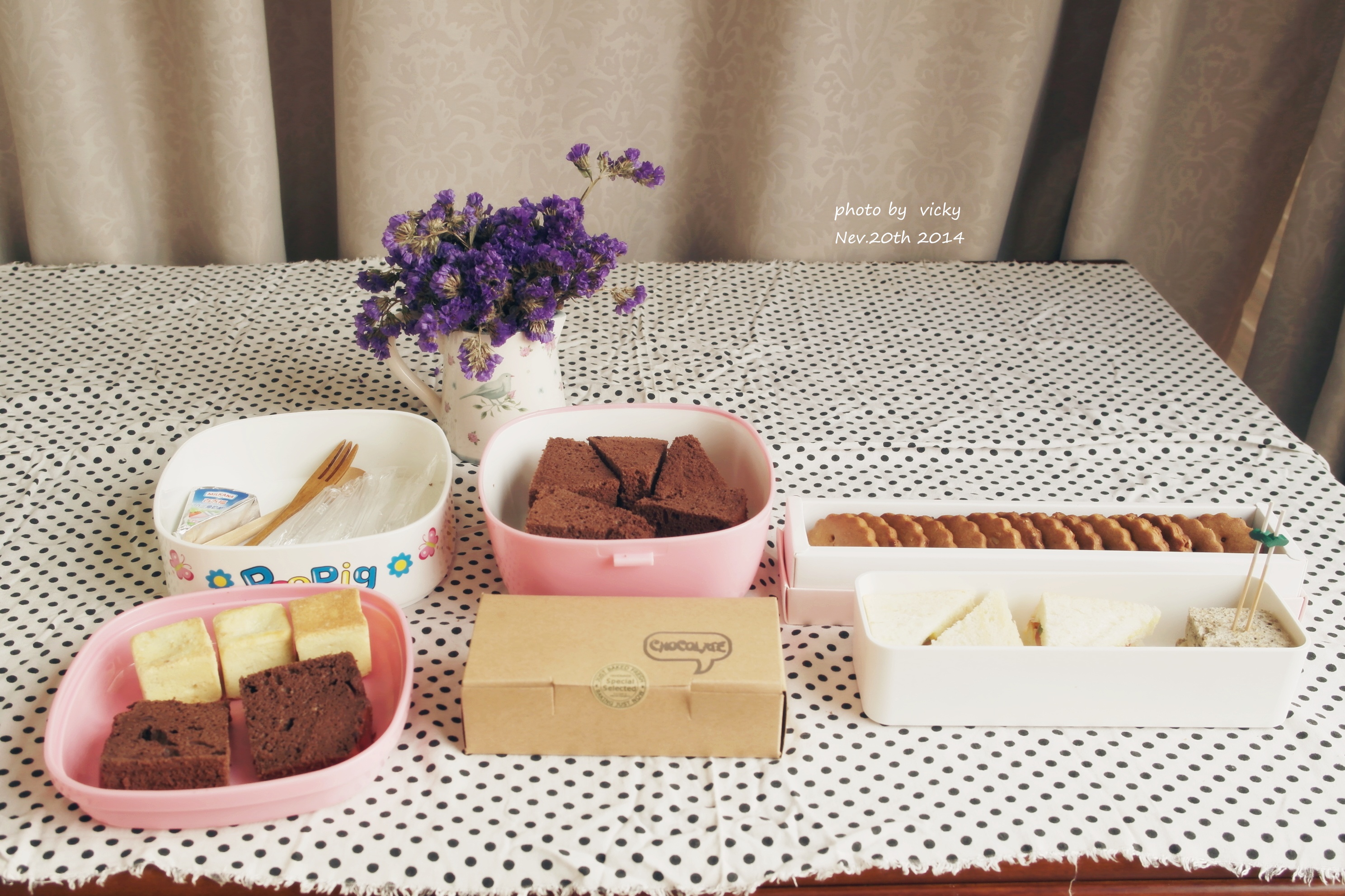巧克力戚风+花生酱饼干+凤梨酥+双味三明治。(除了凤梨酥...