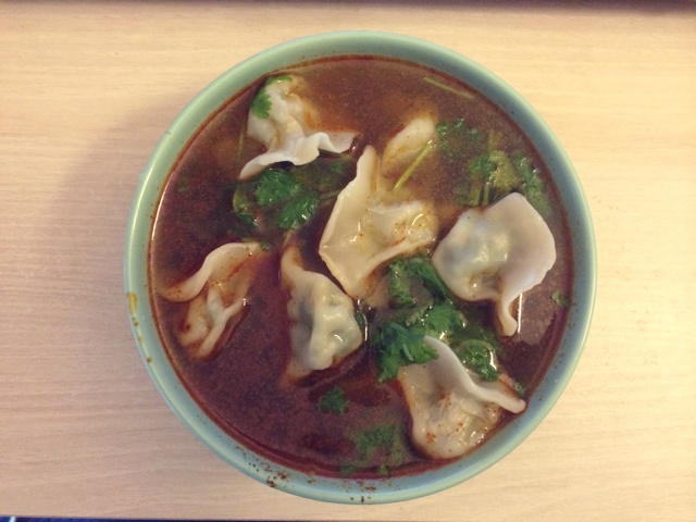 临时起意 冷冻饺子 煮好了想吃汤饺,就加了生抽,香菜,油泼辣子,盐。齐活儿。要是有虾皮就更完美 #午餐•2014年11月...