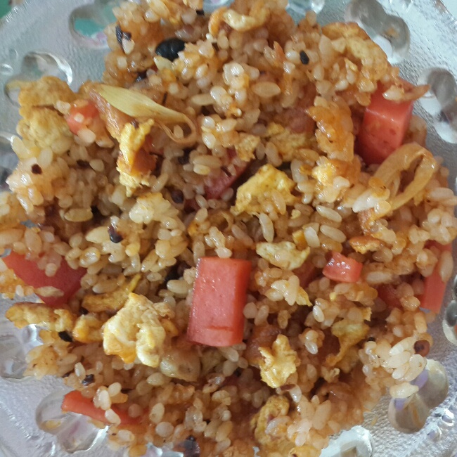 老干妈火腿蛋炒饭。