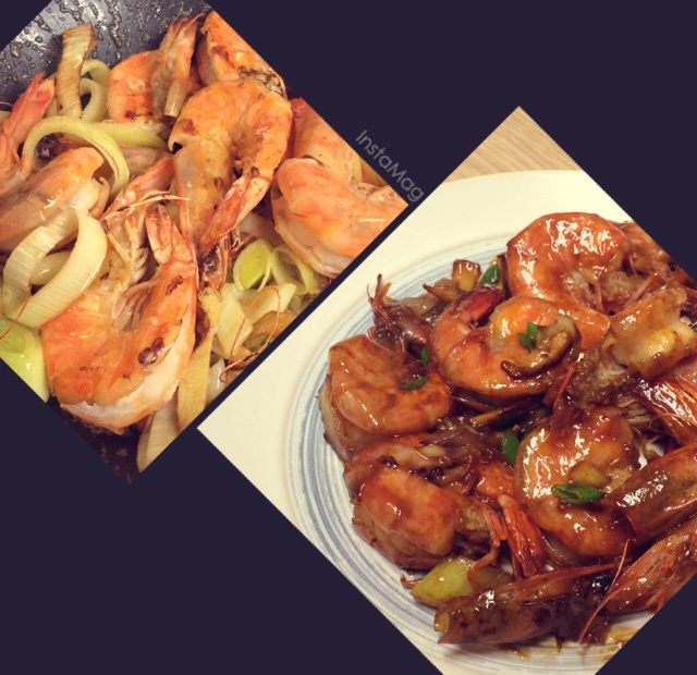 【糖醋葱爆虾】酸甜口,原创哈哈——因为虾不够新鲜,油煸的时候放了很多大葱,味霖去腥后汁水倒掉,挑出大葱,再加入糖醋番茄酱...