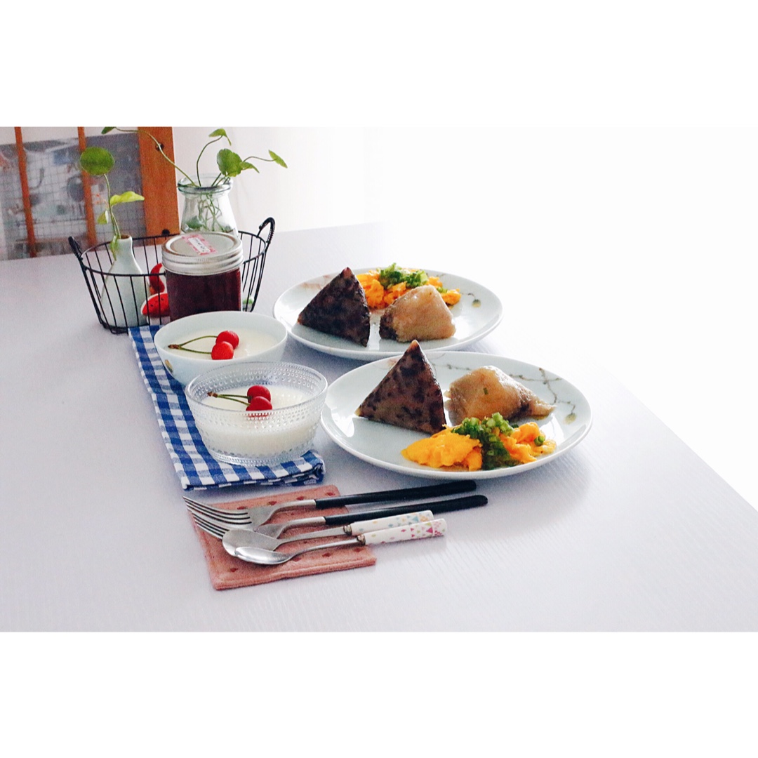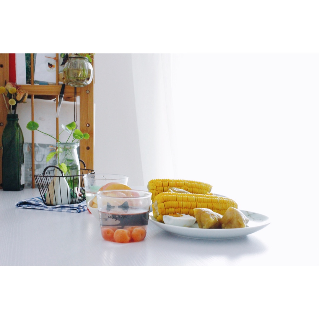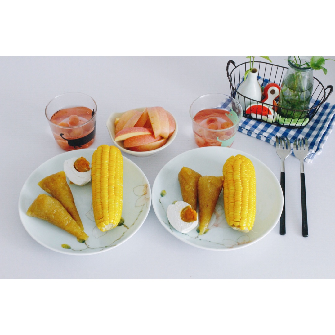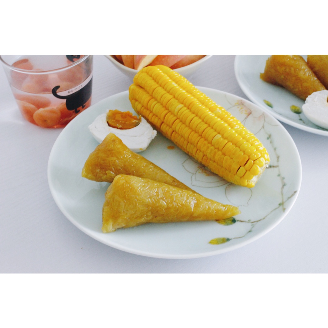 其实白粽玉米都是家里带来的,邓同学就是加了个热,摆了个盘~~