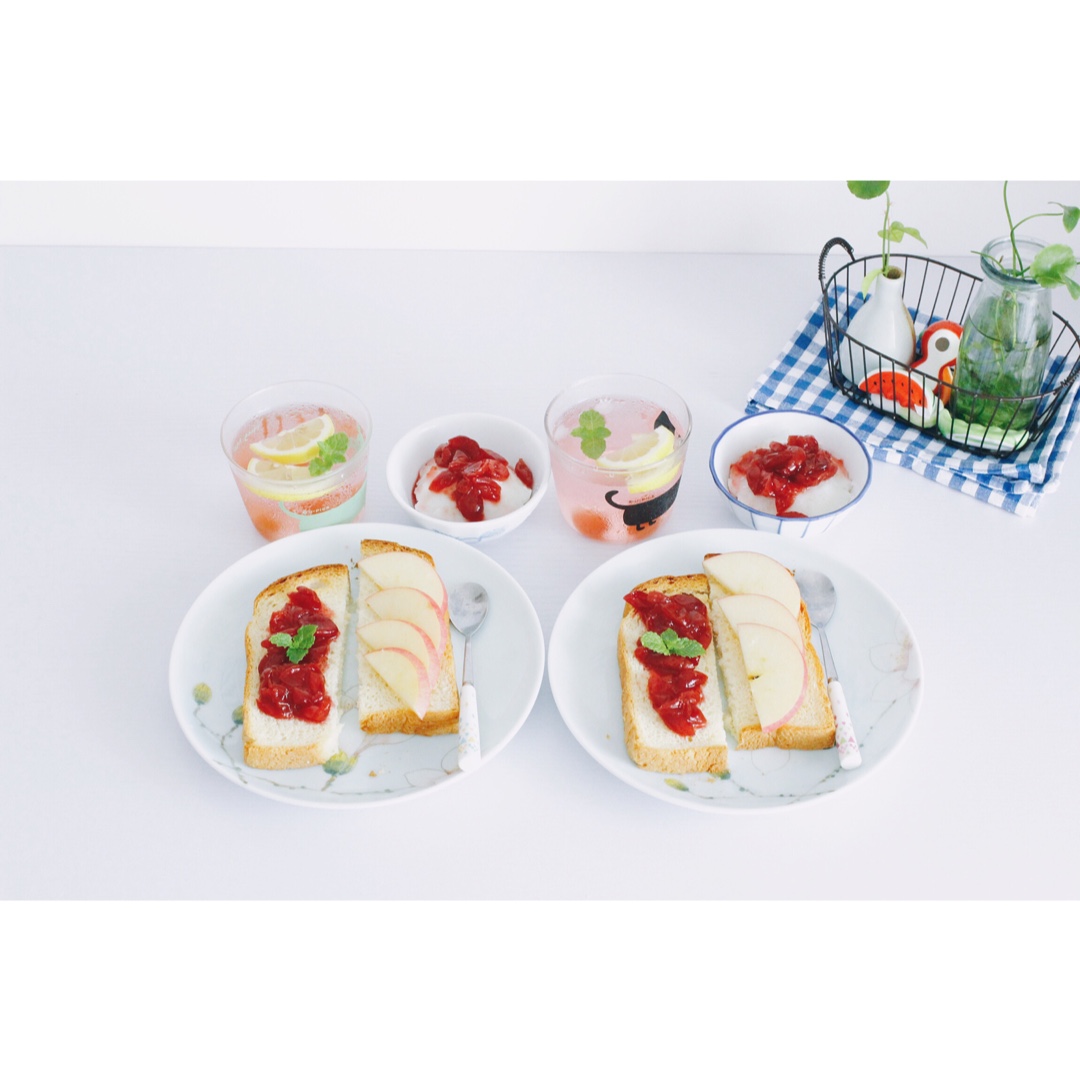 被樱桃承包了的早餐,樱桃酱山药泥,樱桃罐头糖水,樱桃酱抹面包|