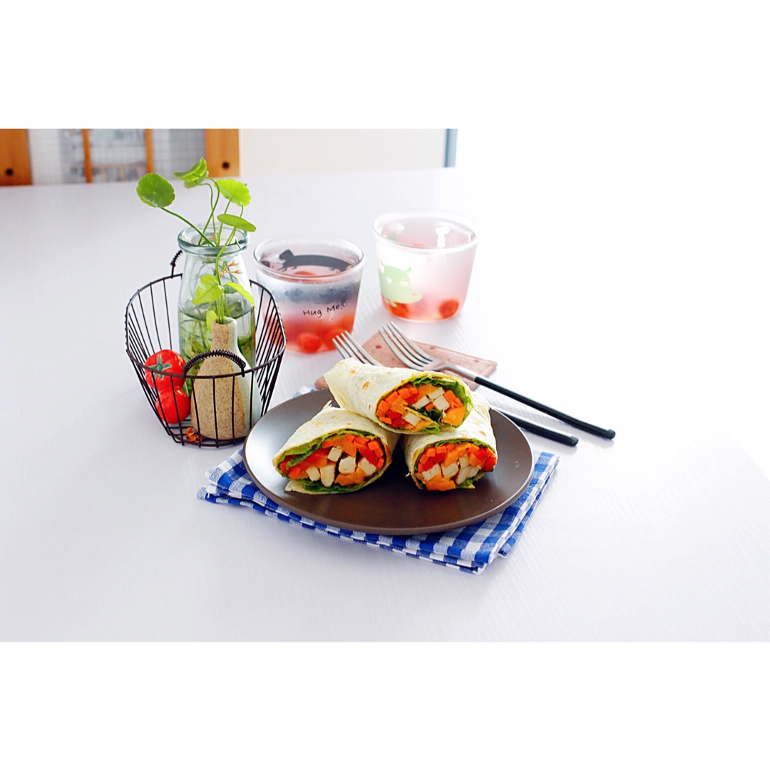 墨西哥鸡胸肉卷,加了芒果,味道很棒呀~~