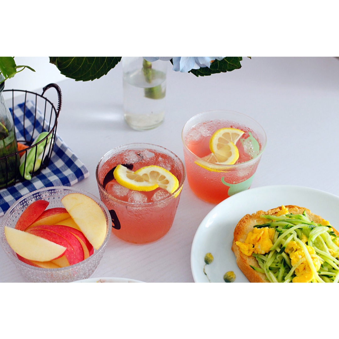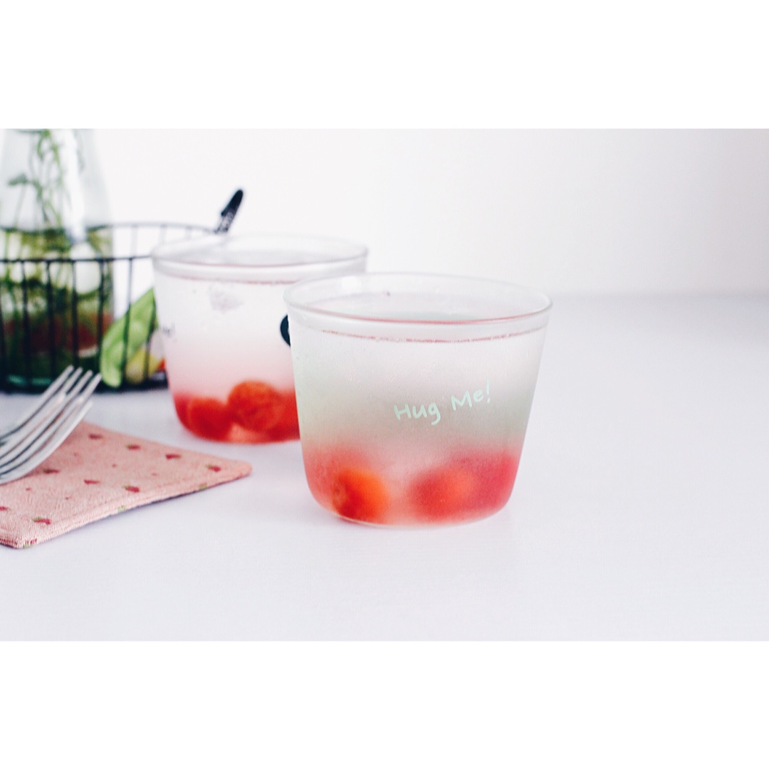 太喜欢这个樱桃罐头里糖水的颜色啦,太粉,太讨喜了~~
