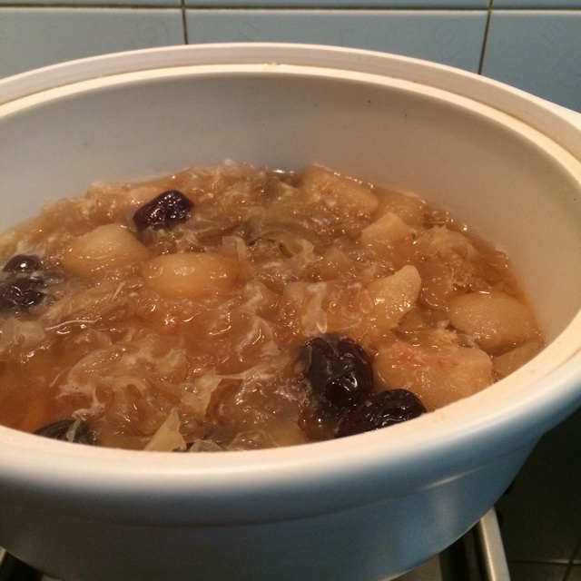 继续熬冰糖、红枣、雪梨、银耳羹,吃时放一点点糖桂花,味道超乎想象