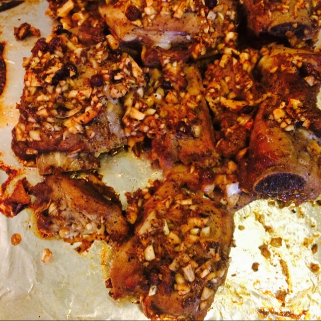 腌了一晚上的蒜香排骨 烤的焦焦的味道最好!!