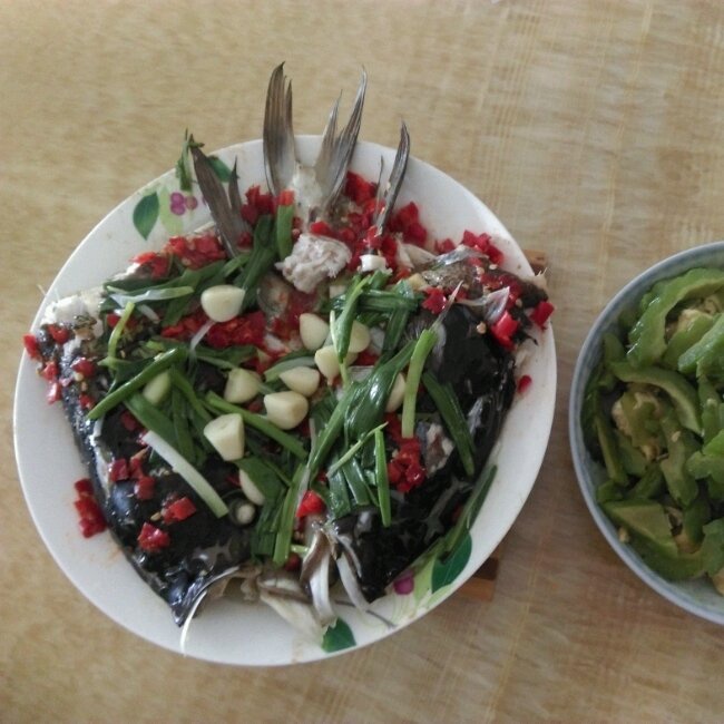 剁椒蒸鱼头:中午老公做的大菜,被孕妇消灭光了ヾ(*´∀`*)ノ