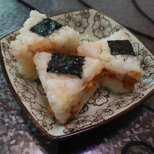 做三个饭团玩玩,里面是炸虾仁切小的碎末。