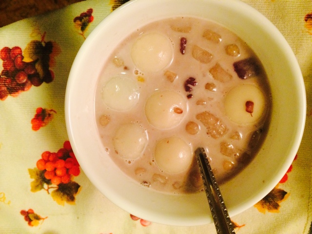 自己做的芋圆 用的是牛奶和红豆为汤 苗小厨非常享受地喝了这么大大的一碗..=)